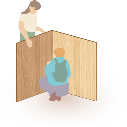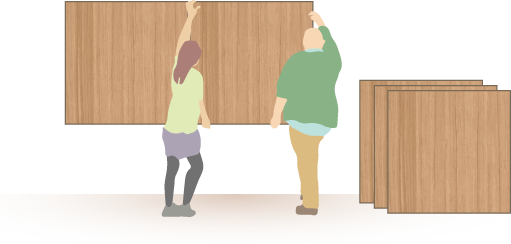YUI Panel は⽇常では内装壁として省スペースに保管でき、災害時はそのまま現場で設営が可能なため、保管庫からの搬⼊出が不要です。