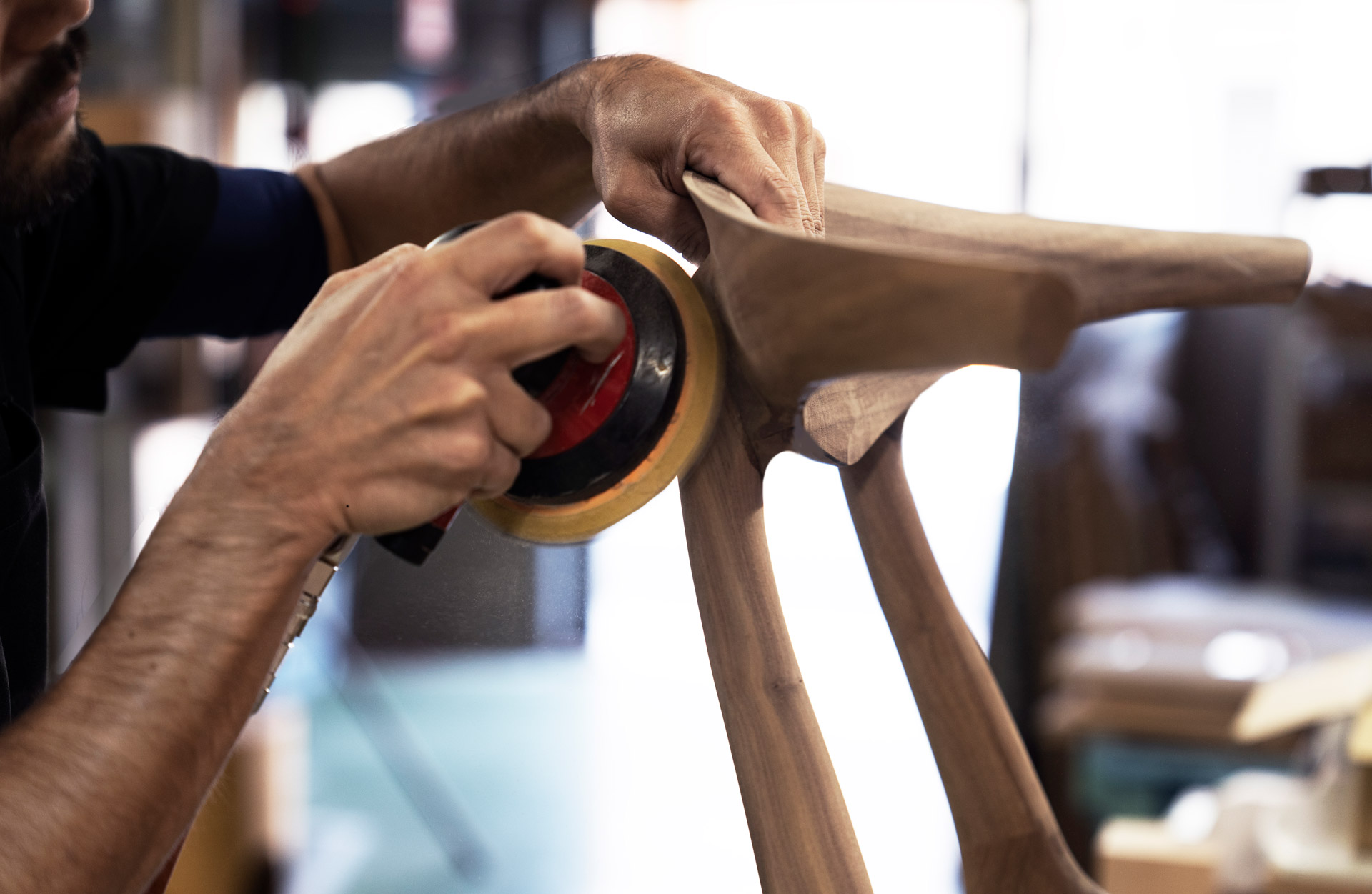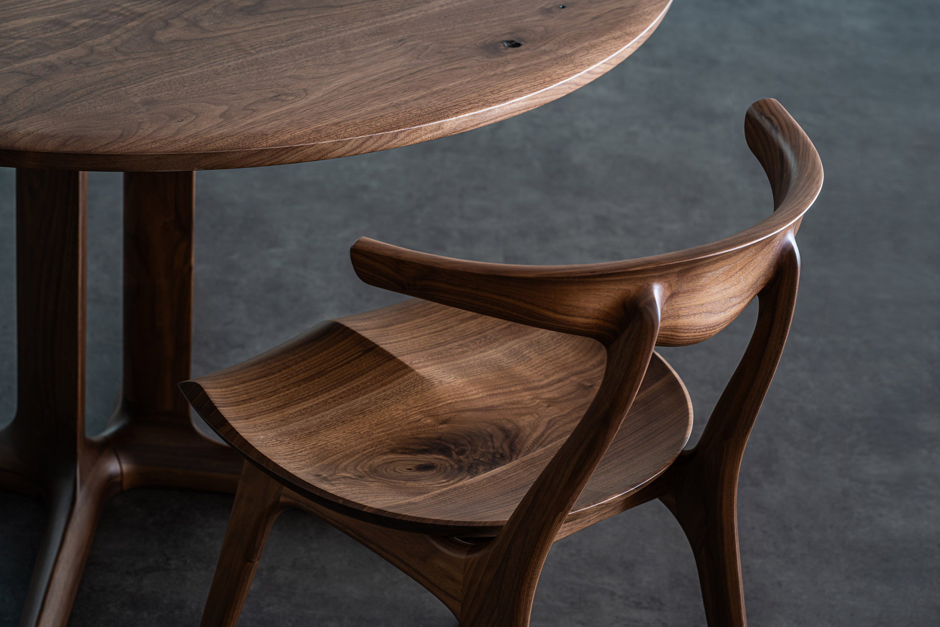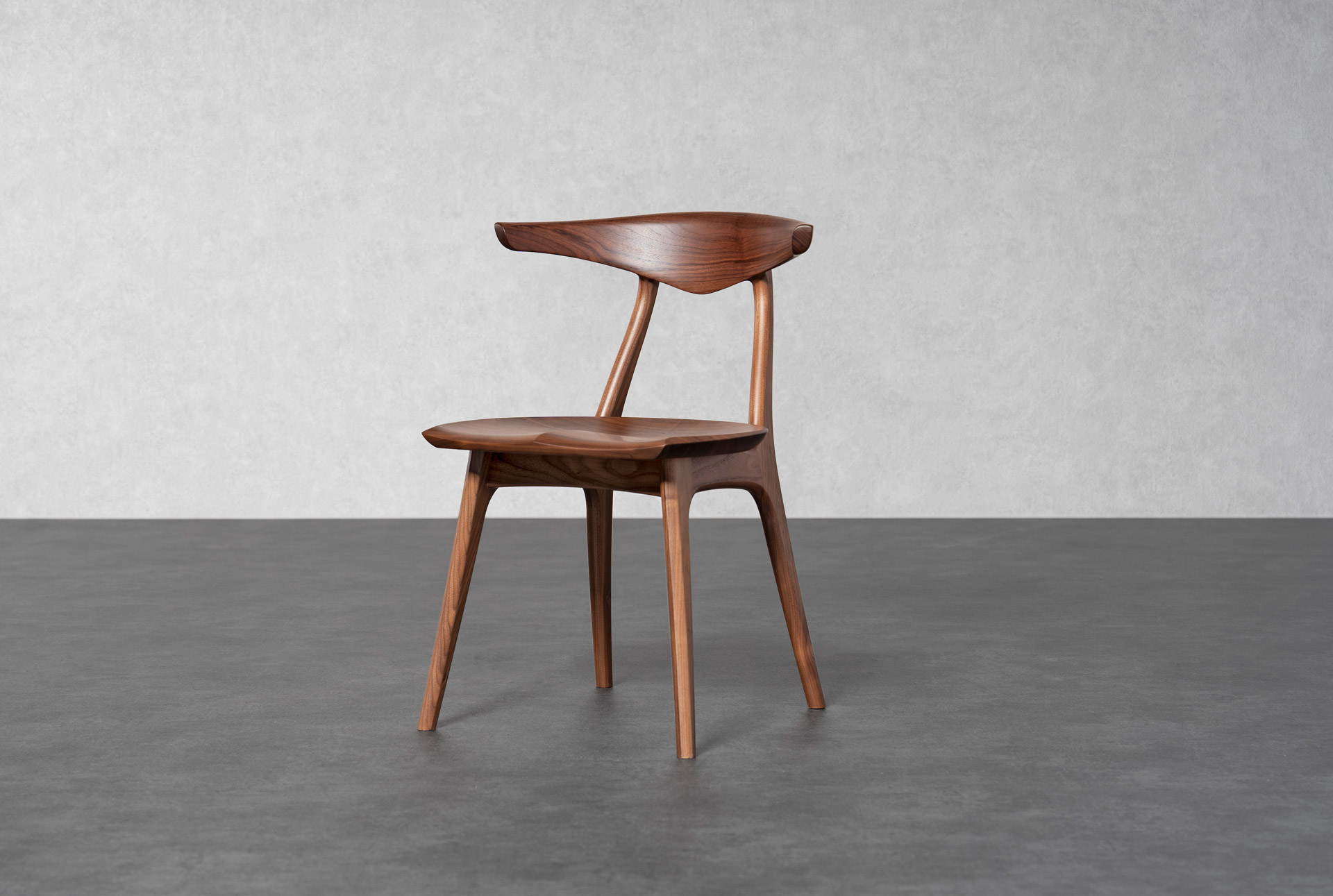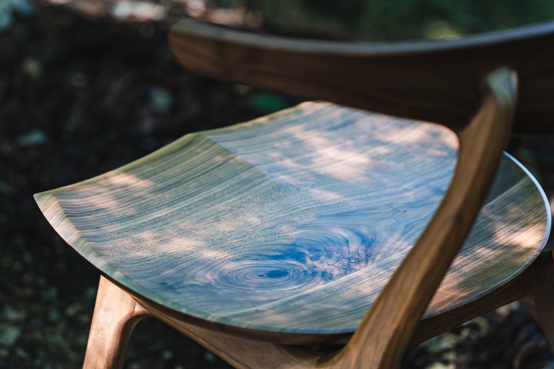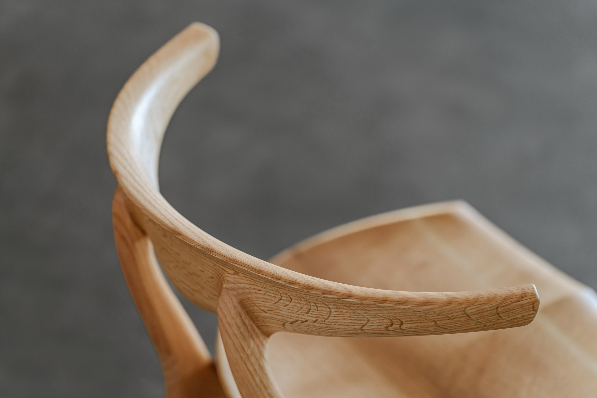 ANIMAS(アニマス)のコンセプトは、自然のダイナミズムと人々の創造性の融合。シリーズを通して、"Sophisticate & Organic"をキーワードに、洗練された生命観を表現しています。椅子の輪郭は、樹木が環境に合わせて樹形を育むように、座るための要素を自然につないだもの。肘かけを兼ねた背もたれは、体に沿った曲木で成形し、深い座り心地の座面は肉厚の板を可能な限り削り込みました。自らを束縛せず人生を謳歌する人々へ送る、これからの物語を生み出す一脚です