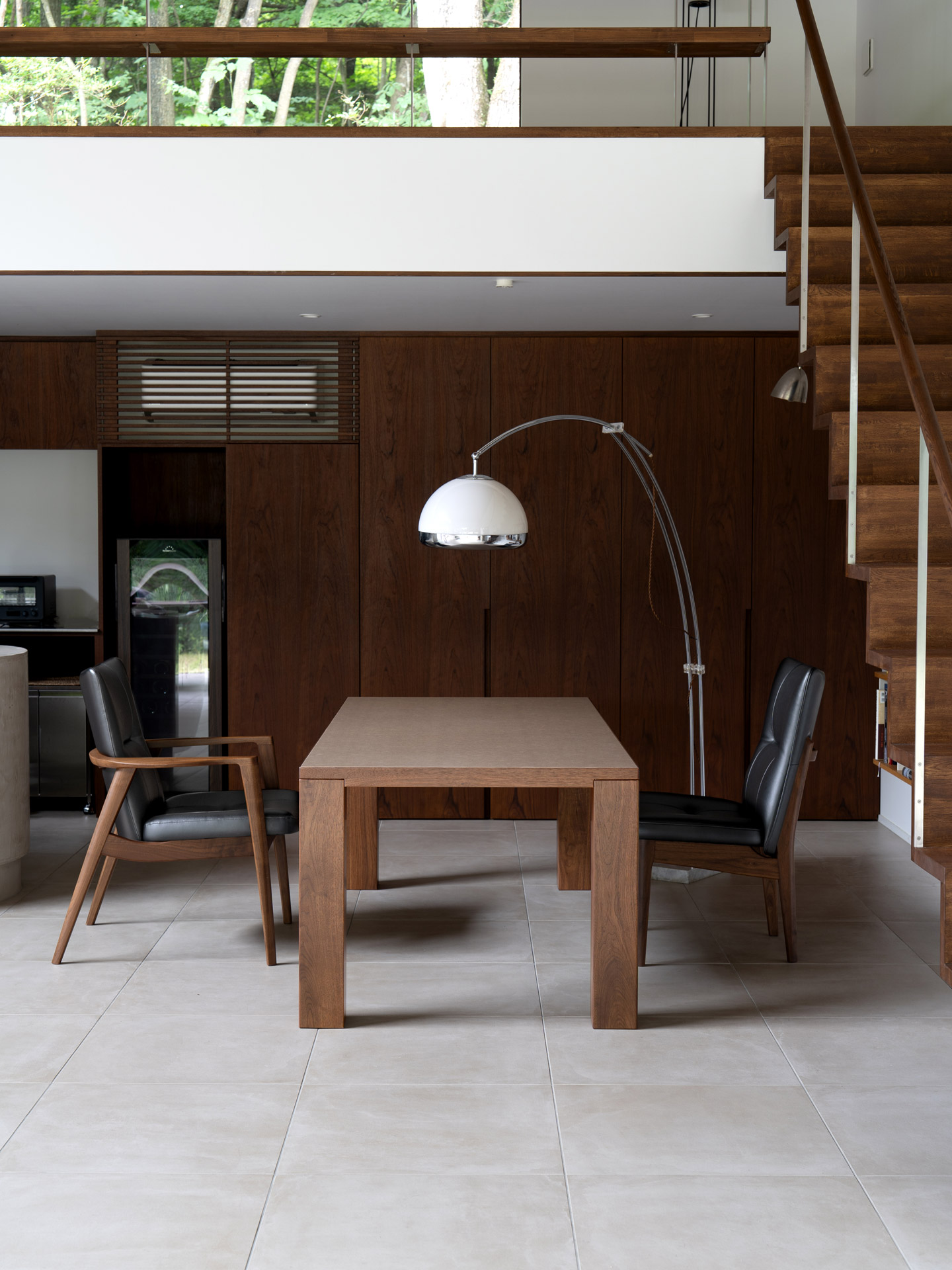 シャープなラインの美しさと重厚感が魅力のBANQUET テーブル。ダイニングテーブルとしての機能性を追求し、質感の高い本革調メラミン化粧板を採用。メラミン化粧板は熱や傷に強く耐久性もある抗菌仕様のため清潔に永く使用できます。素材のコンビネーションが美しいBANQUET テーブルがダイニングシーンをより一層引き立てます。